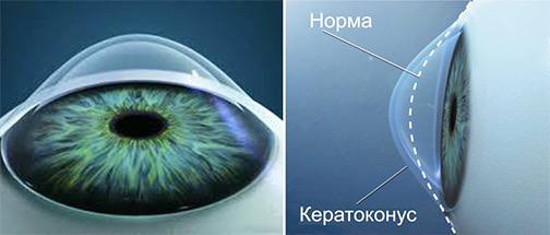 Кератоконус — це неінфекційне захворювання, при якому рогівка (прозора передня оболонка ока) стоншується і поступово набуває конусоподібної форми замість звичайної сферичної. Зміна форми призводить до того, що світло, проходячи через рогівку, заломлюється неправильно — і зображення на сітківці спотворюється.