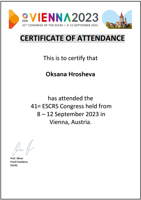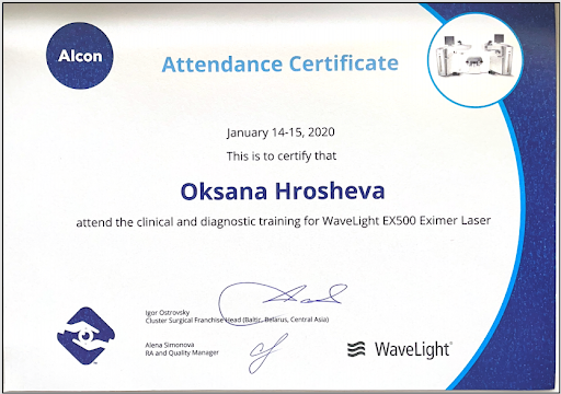 - 2020 — Клініко-діагностичний тренінг з ексимерного лазера WaveLight EX500, Alcon